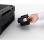 Prints on a variety of paper types using a hybrid ink system for sharp, black text and vivid, borderless photos