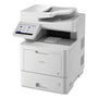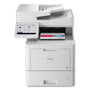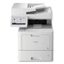 The Brother MFC-L9630CDN Workhorse Enterprise Color Laser All-in-One Printer provides enterprise-level performance, advanced security features, and reliable output. Offers built-in value with included Brother Genuine 9,000-page black and 6,500-page color toner cartridges. Delivers the lowest laser color cost per page ever from Brother by using the TN815 super high yield replacement toner cartridges for 15,000 pages black and 12,000 pages color. Print speeds up to 42 ppm for enhanced productivity. The 100-page capacity auto feeder scans double-sided documents up to 104 ipm. The 620-sheet total standard paper capacity that is expandable. Easily print from and scan to mobile devices. Optional dual band (2.4GHz/5GHz) wireless module (sold separately). Machine Functions: Copy; Fax; Print; Scan; Printing Type: Laser; Maximum Print Speed (Black): 42 ppm; Maximum Print Speed (Color): 42 ppm.